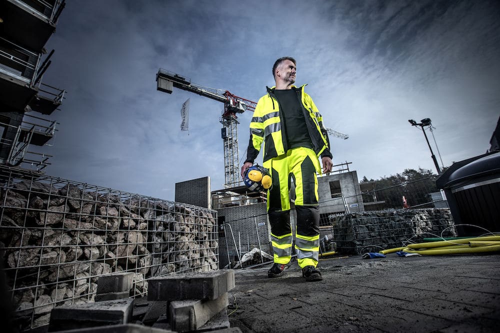 Functional triple-layer jacket, in wind- and water repellant softshell material. Two breast pockets, left one with internal phone pocket and solution for hands-free. Two side pockets. Sleeve pocket on left arm for keys and keycards etc. Inner pockets on both sides, double pockets on left side, one with Velcro closure and one with zipper. ID-card holder. Ventilation zippers under arms with mesh. Extended back. Detachable hood, adjustable with drawstring. Fleece lined collar for increased comfort. Adjustable cuffs with Velcro and adjustable waist with drawstring.