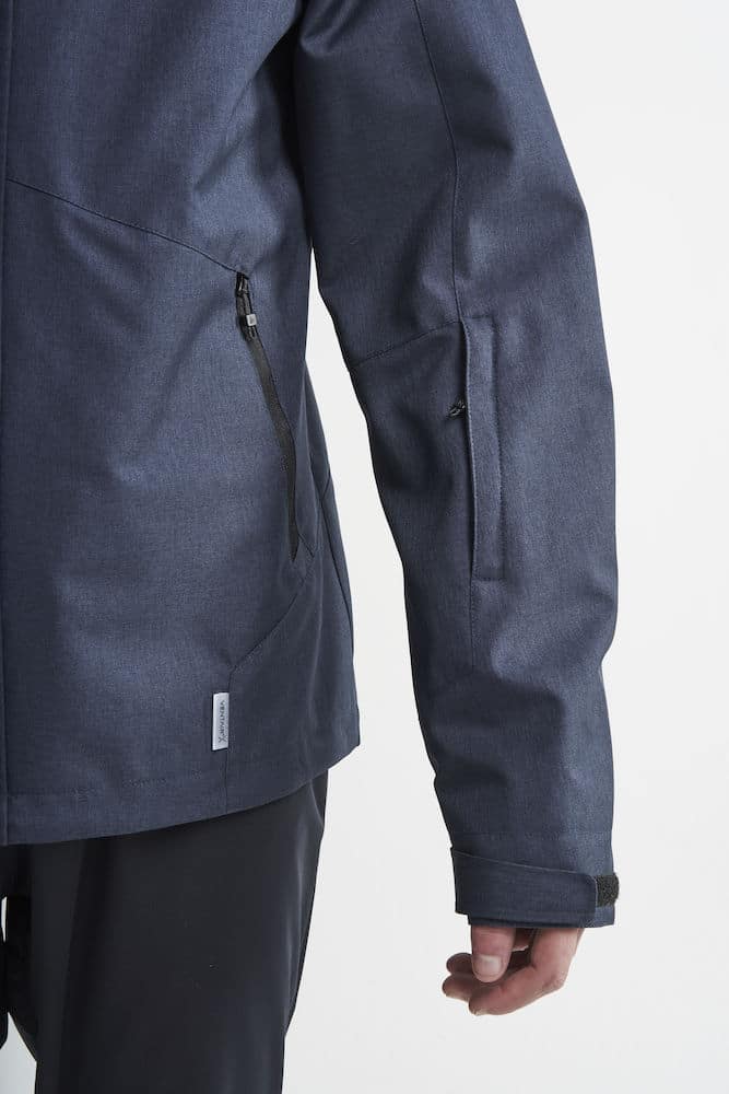 Modern shell jacket with high collar, adjustable waist and detachable hood.•Two zip hand pockets at sides and zip ski pocket at sleeve•Inner pocket with zip at right side•Reflective piping at hood•Adjustable waist with elastic drawstring and stoppers for best fitting.•Jersey cuff with thumb hole in sleeve for better comfort•WP 8,000/MVP 8,000