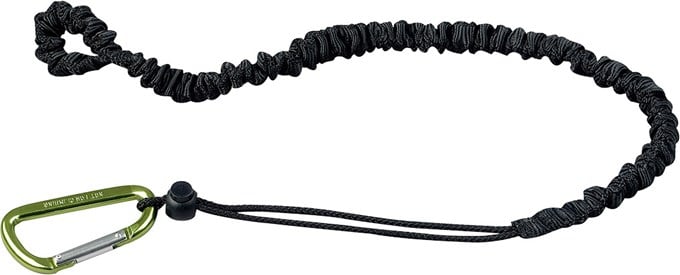 Tool lanyard that prevents tools from falling down and causing damage. Attach to work belt or around wrist.